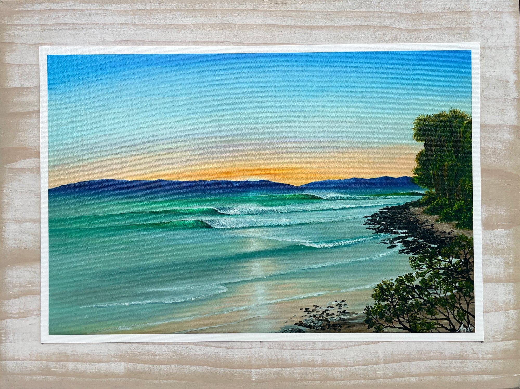 Epic Rincon at Sundown . 11 x 16". Giclee print mounted on a weathered finish wood plank. These are absolutely gorgeous and come ready to hang. Each product is individually made by me. Each piece is one-of-a-kind.